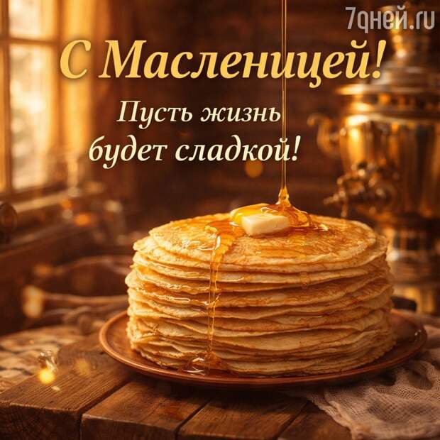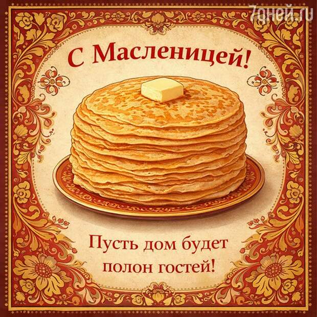 Масленица с блинами — это, пожалуй, самый узнаваемый образ праздника. Румяные, золотистые, с маслом или сметаной — блины на Масленицу пекут все, у кого есть хоть малейший повод собраться за общим столом. Именно поэтому открытки с блинами и праздничными столами остаются самыми популярными для поздравлений: они сразу создают нужное настроение и вызывают самые теплые ассоциации.