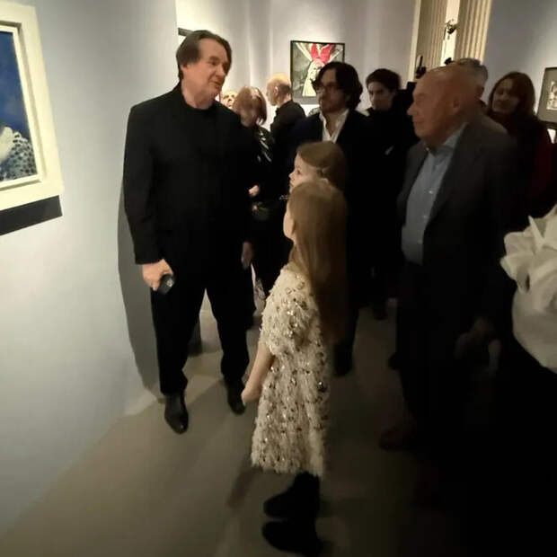 На днях генеральный директор Первого канала привел девочек в Пушкинский музей на открытие выставки работ Марка Шагала, на которой собрались представители высшего света.37-летняя Софья показала несколько кадров, снятых на выставке, на которых запечатлела момент общения ее мужа с Владимиром Познером. Ее дочери в этот момент с интересом рассматривали картины.