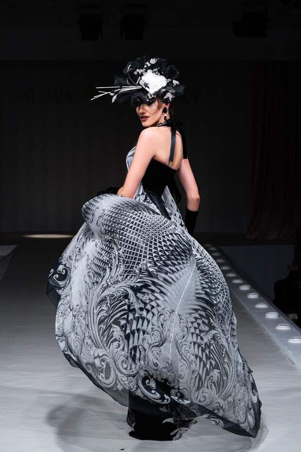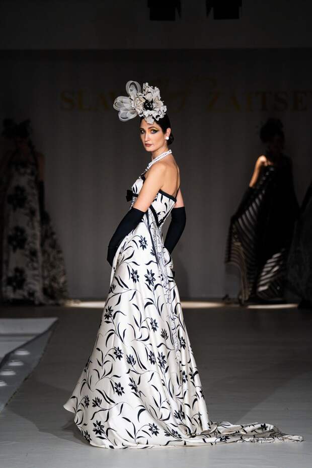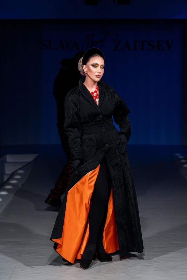Лаконичные фактурные платья с кокошниками гармонично продолжили эту тему.Их великолепие элегантно оттеняла мужская классика — пальтовая группа и костюмы. На подиуме вновь блистала линия Slava Zaitsev Prêt-à-Porter, где знаменитая идеальная посадка от Зайцева была представлена в актуальных трендовых решениях.