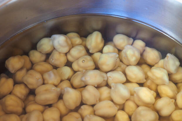 И тут важную роль играет предварительное замачивание нута, за счет чего он получается более мягким, варится быстрее и лучше усваивается.Рекомендуется заливать турецкий горох водой из соотношения 1:4, то есть взять одну чашку нута и четыре чашки воды. Его засыпают в кастрюлю, добавляют жидкость и оставляют на 8–12 часов. Потом следует сменить воду и поставить гарнир вариться. Эксперты рекомендуют не использовать жесткую воду и старый горох, а также не добавлять соль, лимонный сок или томаты в начале варки, иначе нут получится «дубовым», пишет автор канала «Товаропедия Official».