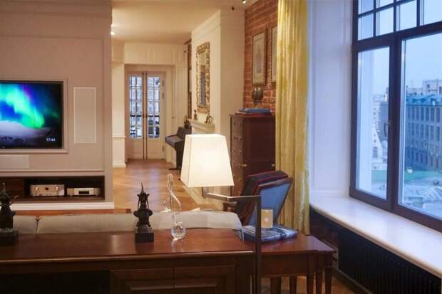 Квартира расположена на Брюсовом переулке в центре Москвы, откуда открывается потрясающий вид на Кремль.