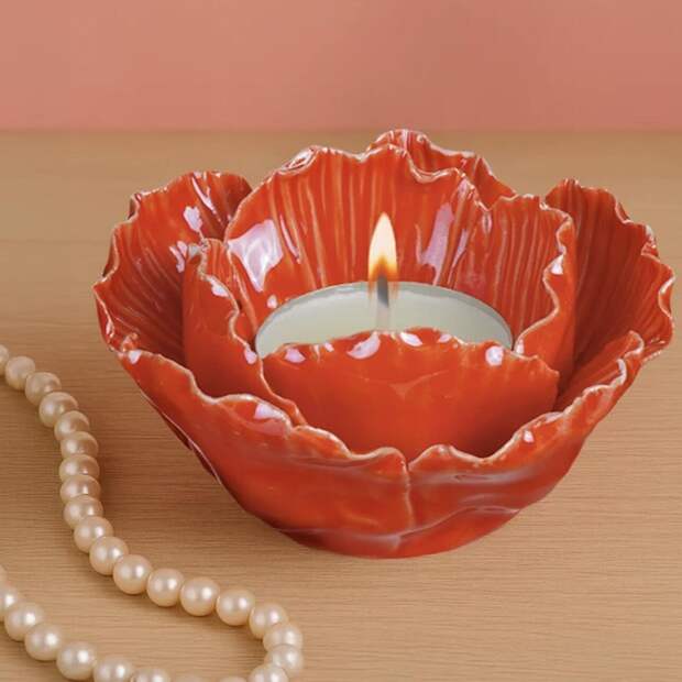 Почему работает: свечи добавляют уют, а необычная форма подсвечника превращает его в самостоятельный декоративный элемент. Керамика без глазури выглядит благороднее пластика и стекла, а еще создает тактильную глубину.