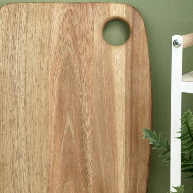 Почему работает: натуральное дерево с красивой текстурой всегда выглядит дорого. Доска – это функциональный предмет, который одновременно служит украшением кухни и подчеркивает внимание к качеству материалов.