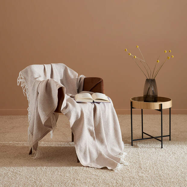 Объемные вязаные пледы из толстой пряжи или пледы из ткани букле (несмотря на то, что сама ткань устарела для обивки мебели) все еще актуальны в текстильном декоре. Выбирайте спокойные оттенки: молочный, серый, кофейный, пыльно-розовый.