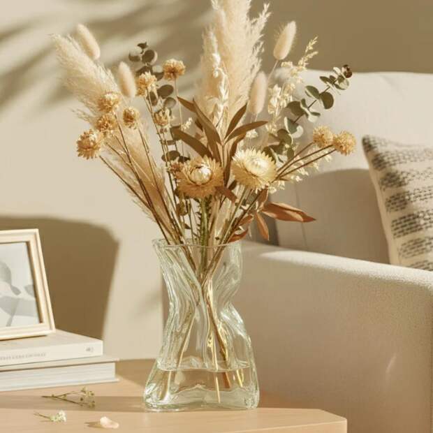 Асимметричные вазы с волнистыми краями или вазы-скульптуры – один из самых простых способов добавить интерьеру современную эстетику. Ищите модели из матового стекла, керамики с текстурной поверхностью или цветного стекла с легким градиентом.
