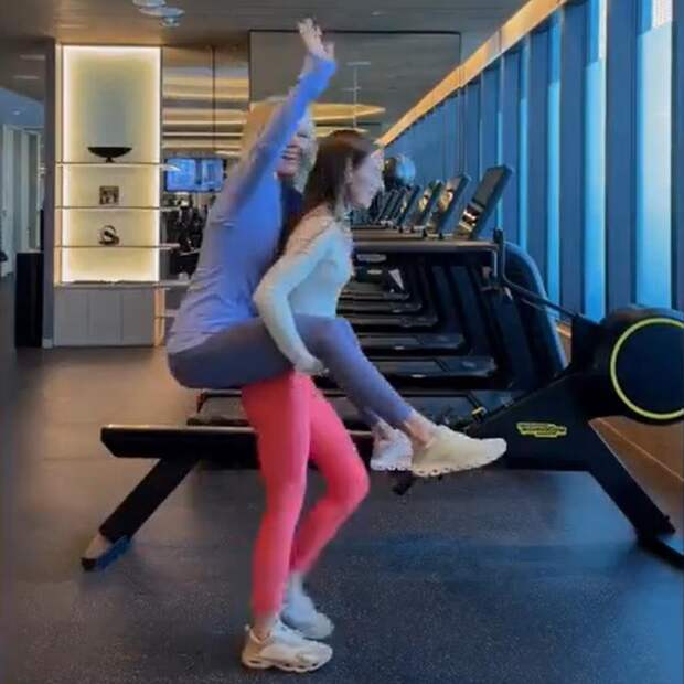 28-летняя Лиана сняла ролик, в котором она в спортивной одежде идет по тренажерному залу, а затем возвращается, но уже со свекровью на спине. Судя по всему, Валерия с невесткой посетили совместную тренировку.