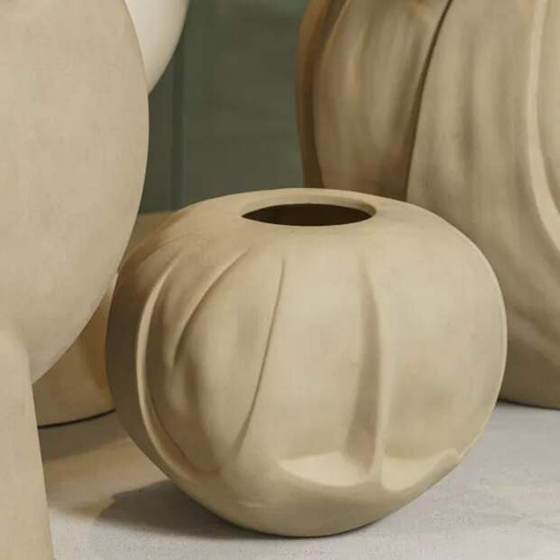 Эта ваза не просто функциональный предмет, а произведение искусства. Плавные линии и мягкий песочный оттенок создают ощущение спокойствия и гармонии. Форма вдохновлена движением ткани, и это придает вазе скульптурность и превращает ее в необычный акцент в любой комнате.