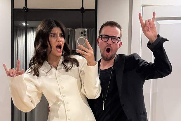 Супруга актера опубликовала семейное фото, на котором ее муж запечатлен в символичном свитере. На нем изображены силуэты пары с ребенком и надпись «семья».
