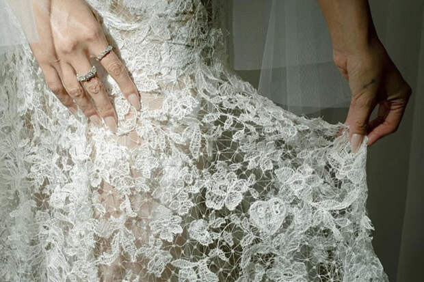 Во второй наряд, скроенный из сплетенного вручную кружевного полотна, она переоделась после окончания церемонии — для свадебного банкета. В этом платье, как оказалось, и обнаружилась скрытая деталь, которую Селена решила теперь всем показать. Деталь представляла собой вышитое вручную и спрятанное в складках юбки сердечко, украшенное инициалами невесты и жениха — буквами «S» и «B».