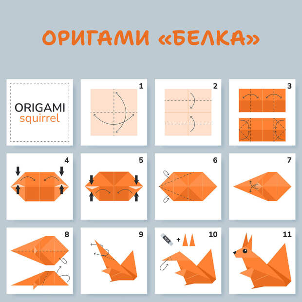 Берта покажет, как сделать кита, белку и машинку из бумаги.