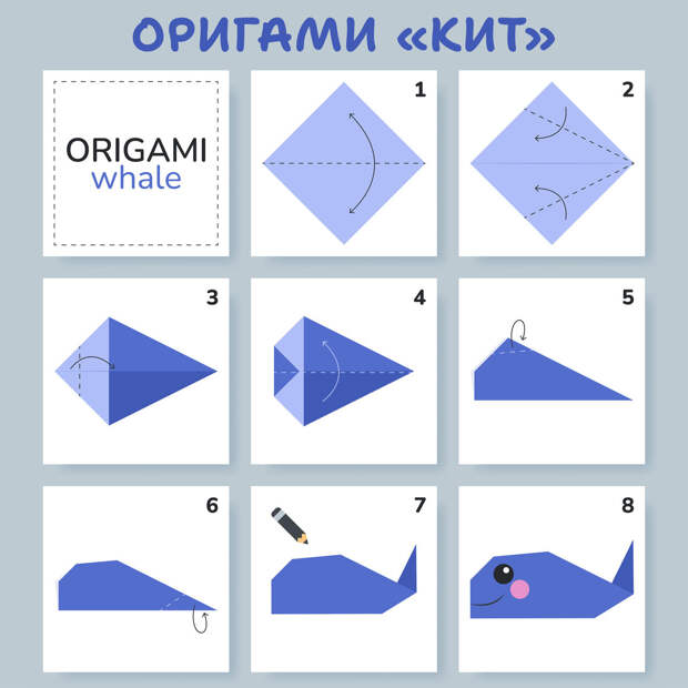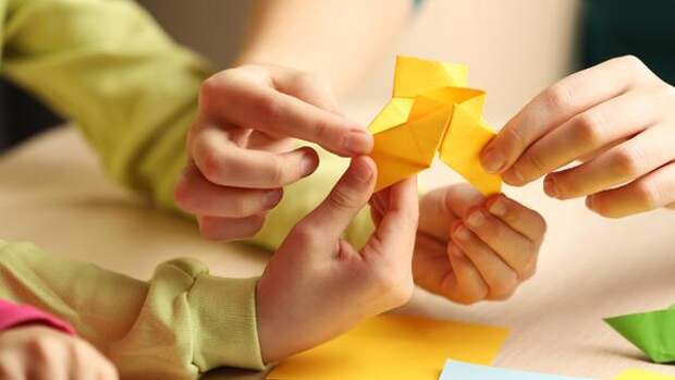Бумагу складывают, следуя инструкции, что развивает не только мелкую моторику, но еще и внимание, память и способность сосредоточиваться.