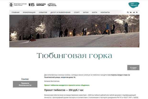 Москвичи, у которых есть свой тюбинг, могут бесплатно покататься на нем в Ростокино или Митино. А в Лужниках действует горка, где бесплатный не только съезд, но и прокат инвентаря.