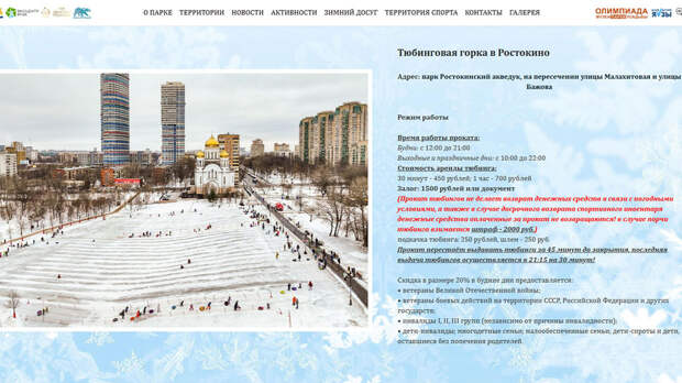 Во многих парковых зонах столицы также есть отличные спуски, на которых можно за небольшую плату покататься на ватрушках.