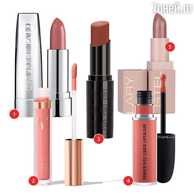 1. Помада Dr. Pierre Ricaud. 2. Блеск Guilty Pleasure Lip Gloss Vera Beauty. 3. Помада Ninelle. 4. Жидкая помада Powder Kiss Liquid Lipcolour M.