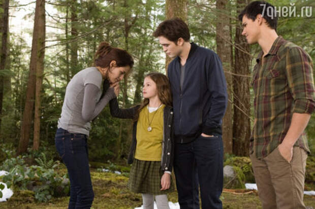 Но перед этим пара, разумеется, женится – без свадьбы в конце «Сумерки» бы точно потеряли добрую половину женской аудитории. Между торжеством и таинством обращения у новобрачных еще остается несколько счастливых недель, во время которых они наконец перестают томиться в рамках платонической любви и приходят к неожиданному открытию – вампиры не бесплодны и могут награждать смертных не только ночами, полными любви, но и незапланированной беременностью.Всю первую часть дилогии «Рассвет» Белла готовится к родам – ребенок, будучи помесью человека и вампира, высасывает из нее всю жизненную силу, однако что-то сделать с этим своим бледноликим новоиспеченным родственникам – семейству Калленов – она не позволяет. Спустя два часа крупных планов с измученной миной Роберта Паттинсона роды все-таки наступают – на свет рождается девочка Ренесми, а саму Беллу за считанные секунды до смерти обращают в вампира.
