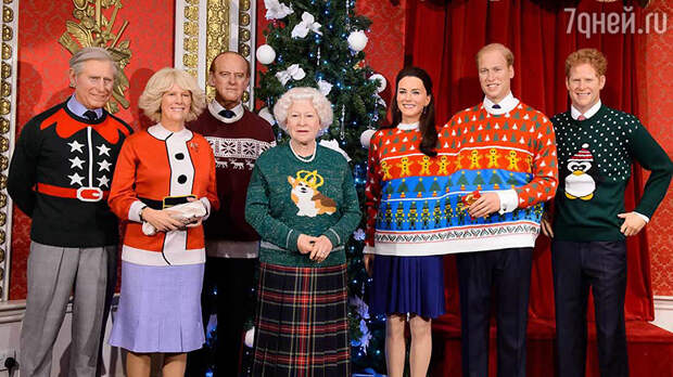 Правда встретиться с членами монаршего семейства можно будет не во дворце, а в Музее Мадам Тюссо в Лондоне.Дело в том, что в этом году музей решил провести оригинальную благотворительную акцию. С личного разрешения королевы, восковые статуи всех членов королевского семейства было решено переодеть в одежду, декорированную в стиле приближающегося Рождества. Любопытно, что фигуры Кейт и Уильяма нарядили в один просторный красно-синий свитер — с намеком на неразлучность супружеской пары. Гарри достался зеленый наряд с рисунком в виде веселого пингвина – как видно в честь экспедиции к Южному полюсу, в которой принял участие младший брат Уильяма. Не забыли даже про корги — любимых собачек королевы: для них тоже соорудили свитера. Сама же Елизавета получила наряд с изображением одного из ее хвостатых любимцев — в короне, лихо сдвинутой набекрень.