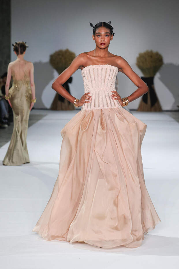 Новая коллекция разворачивается как визуальный роман. Черно-белые, аскетичные образы, отсылающие к детству Шанель, постепенно наполняются светом и золотом, символизируя обретение свободы и силы. Лейтмотивом показа стал символ колоса — знак стойкости и роста вопреки обстоятельствам.
