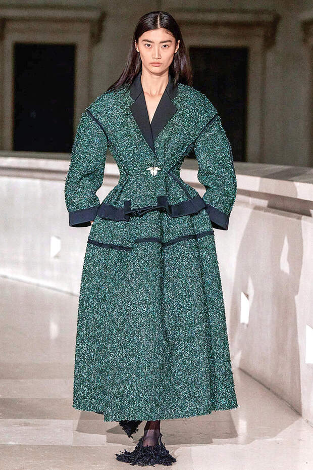 Но долгие годы этот материал использовался только в мужском гардеробе. К женщинам твид попал исключительно благодаря стараниям Коко Шанель, у которой в молодости были романы с представителями высшего британского общества. В 1920-е годы она подолгу жила в Англии и Шотландии с герцогом Вестминстерским в его поместьях, ездила с ним на охоту, наблюдала за привычками местной аристократии. Именно Шанель позаимствовала твид у мужчин и стала шить из него одежду для дам. Впоследствии она придумала твидовый костюм с коротким жакетом без воротника, тесьмой по краям и прямой узкой юбкой. Коко представила его публике на показе в 1954 году. Твид хорошо держал форму, и костюм оказался крайне удобным, не сковывающим движений. Шанель выбирала расцветки, привлекательные для дам. С легкой руки Коко твидовые костюмы стали не только символом ее бренда, но и воплощением элегантности, женственности, шика и высокого статуса, любимой одеждой и первых леди, и жен миллионеров, и голливудских кинозвезд… Но в последние годы на твидовые костюмы начались нападки, в первую очередь за старомодность. Мол, слишком традиционный и скучный, ассоциируется с «бабушкиным стилем», не только прибавляет возраст, но и утяжеляет образы. На самом деле проблема заключается не в материале, а в устаревшей подаче и фасонах, которые тянут назад, к прошлым эпохам. Поговорим о том, как сегодня носить твид, чтобы выглядеть актуально, современно и даже моложе своих лет.Крой важнее, чем цвет