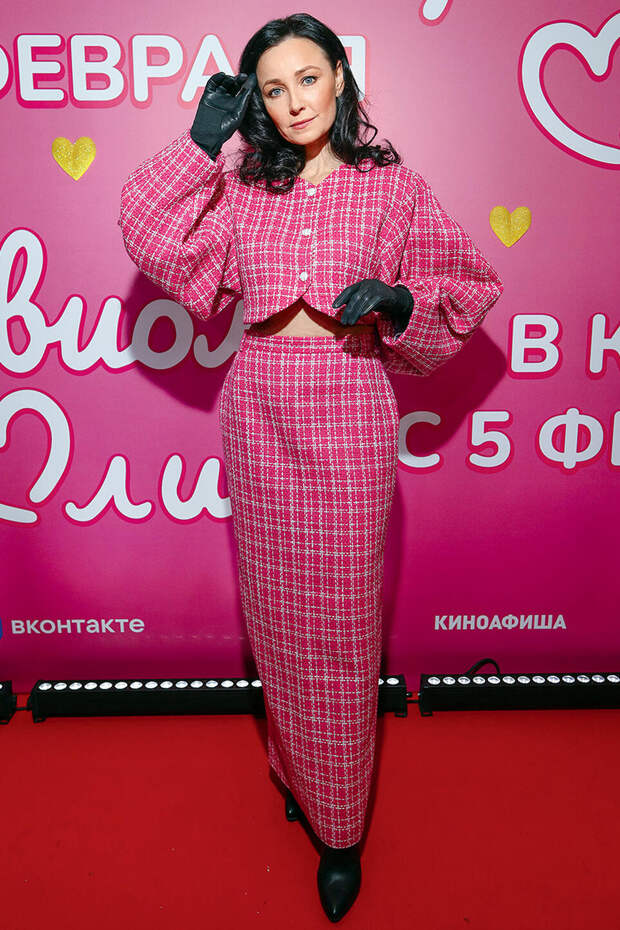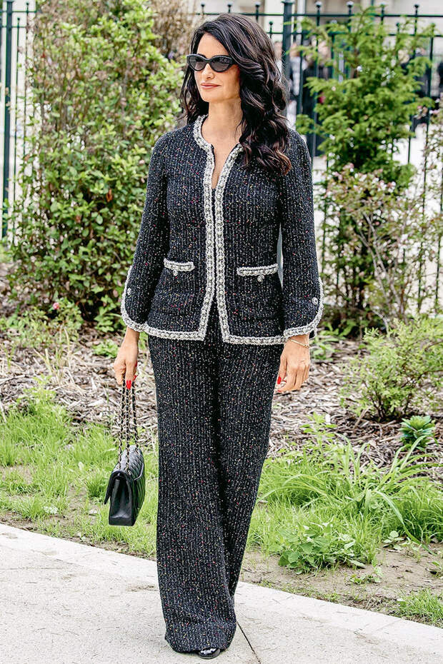 А что делать, если вам «немного за сорок»? Отказаться от твида совсем? Вовсе нет. Пенелопа Крус в 51 год с удовольствием носит классический твидовый костюм от Chanel. Тут есть один важный нюанс: образ осовременивается при помощи определенных аксессуаров. В данном случае работают солнцезащитные очки модной формы, без какого-то декора. 45-летняя Александра Ребенок использует другой прием: ярко-красный твидовый жакет традиционного кроя комбинирует с юбкой в тон длиной в пол и с большим разрезом. Что тут играет важную роль? Юбка, которая сшита не из твида, а из другого материала — не такого плотного, и она облегчает образ.