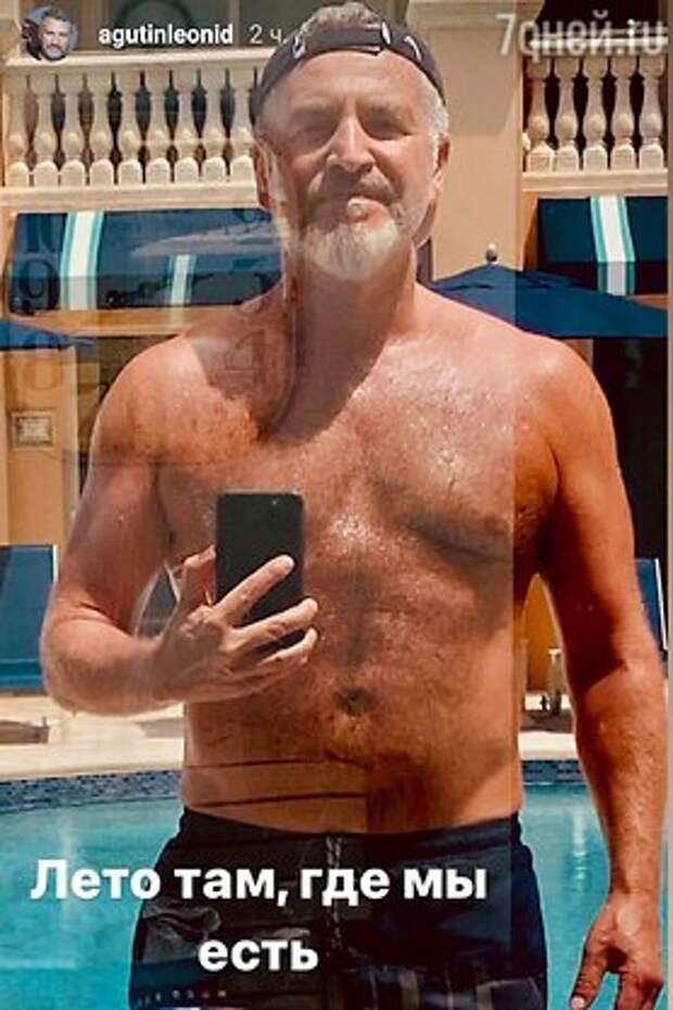 «Мир, порой, откровенно подстрекает к счастью, а рецептов не даёт. Мол, а дальше ты сам. Что ж, мотивация», — написал артист в Инстаграме после приезда.Сегодня исполнитель сделал селфи в отражении зеркала, стоя в плавках возле бассейна. Леонид, любивший раньше выступать в расстегнутых рубашках, следит за тем, чтобы его фигура с возрастом почти не менялась. Для этого он ограничивает себя во «вредной» пище и больше двигается. Любимым видом спортом Агутина является большой теннис.