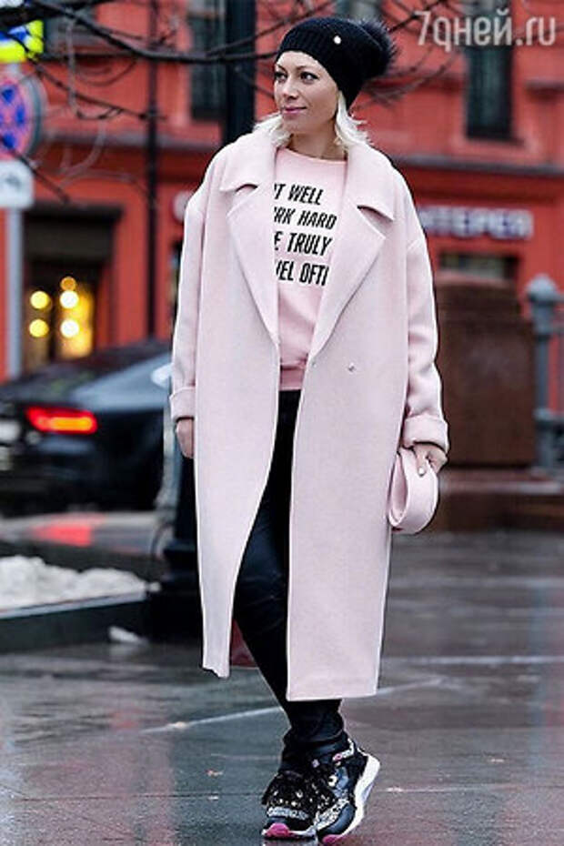 Телеведущая Аврора облачилась в пальто очень модного нежно-розового цвета от бренда I'll Be Back и свитшот в тон верхней одежды от SISTERconsept. Образ завершили стильные кроссовки и черная шапочка с помпоном, которую уже называют хитом этой зимы.