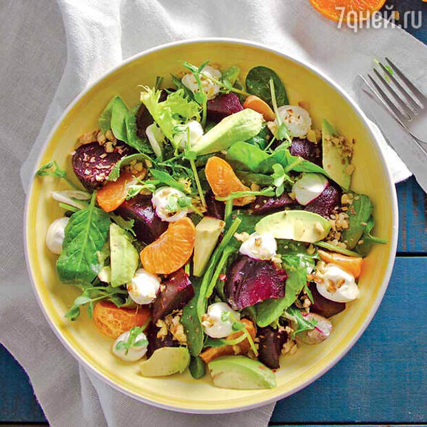 Потому что микс из свеклы, мандаринов и авокадо, вместе нарисовавших этот салат, — совсем не то, что первым приходит в голову. Но под аккомпанемент соуса-минутки вы поймете, что такое богатый вкус», — говорит шеф-повар и эксперт по антивозрастной кулинарии Сергей Леонов.Рецепт: состав