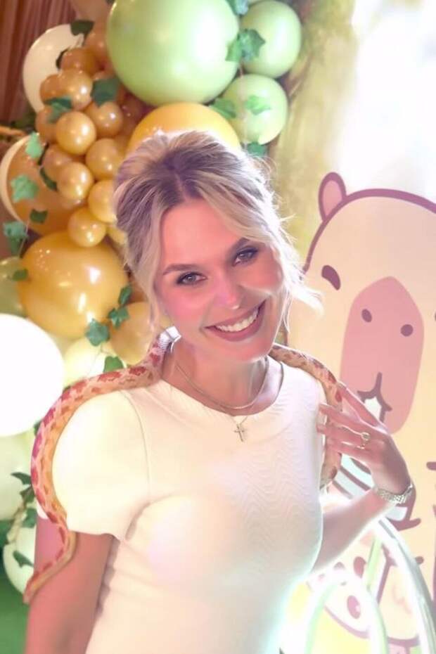 Праздник отличался яркой программой: имениннице и гостям праздника, среди прочего, предлагали принять участие в фотосессии с ручной змеей.