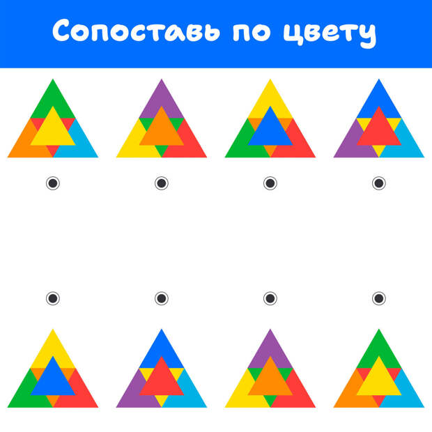Сопоставление предметов по цвету — отличное развивающее занятие, которое учит ребёнка различать и называть предметы одинакового цвета. Такая игра помогает малышу стать более усидчивым и внимательным.