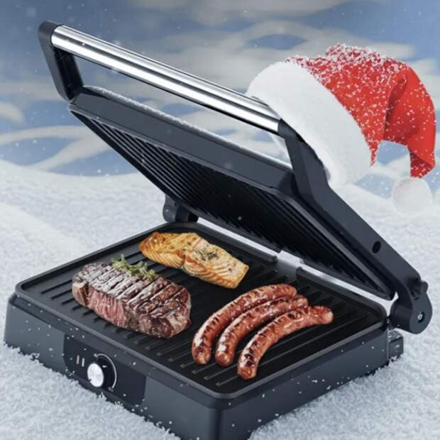 Идея, как совместить вкусное и полезное: гриль подойдет и для сочного мяса, и для овощей. Прекрасный подарок мужу на Новый год или родителям, которые любят готовить — вариант одновременно универсальный и практичный.