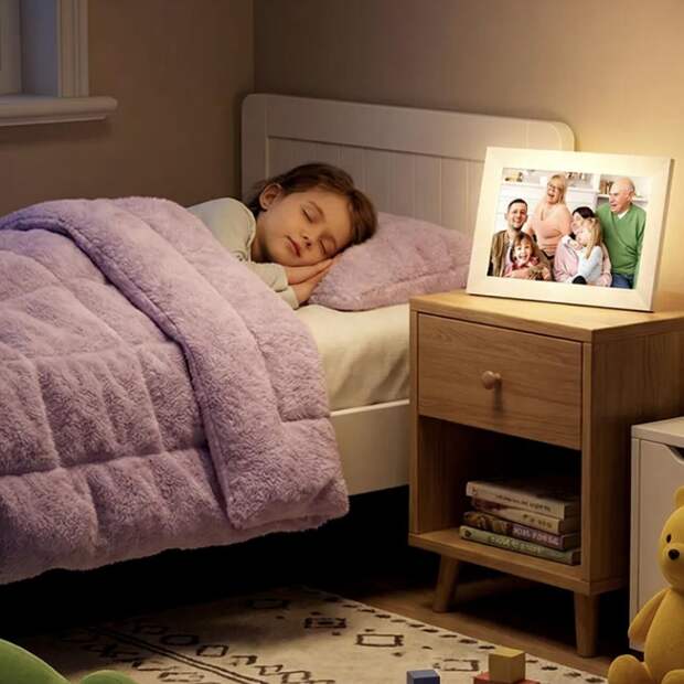 Оригинальный подарок на Новый год для всей семьи: можно заранее загрузить в нее фотографии или дать доступ родным, чтобы делиться снимками. Рамка обновляется сама, и каждый день показывает новое воспоминание: трогательно для бабушек, родителей, дальних родственников, ведь вы дарите настоящий способ быть ближе.