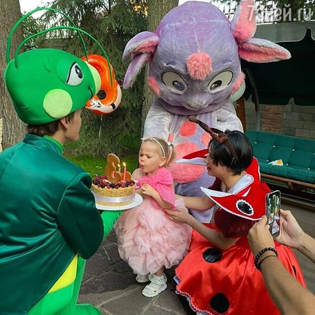 Сначала она веселилась с аниматорами в светлом платье с пышной юбкой и черным бантом, а на финальную часть праздника Кудрявцева подобрала девочке образ принцессы в розовом. В таком виде она задувала свечи на торте небольшого размера, украшенного ягодами и декором с её именем.Лера же встречала родных в «простом» образе — белой футболке и широких брюках желтого цвета. В обсуждении фото в Инстаграме многие написали, что именинница затмила свою маму.