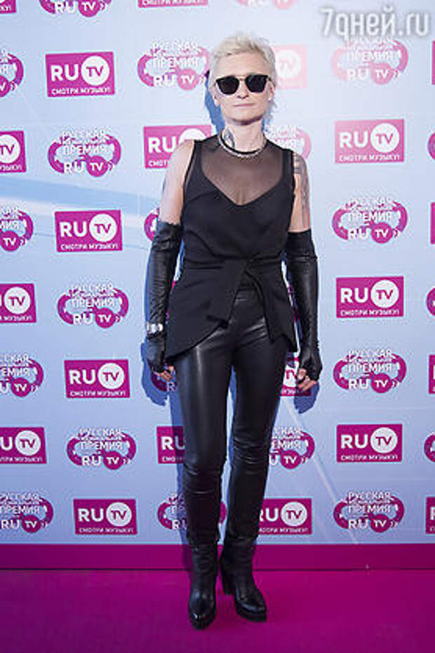 В смелом наряде пришла на премию RU.TV Диана Арбенина. Она поднялась на сцену за «матрешкой» в номинации «Лучший рок-проект» в кожаном костюме с прозрачным глубоким декольте.
