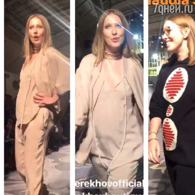 Ксении Собчак приписывают новую беременность. Предположения, что звезда снова находится «в положении» появились после модного показа дизайнера Александра Терехова. Телеведущая и модельер являются хорошими друзьями, именно поэтому Собчак согласилась поработать у него на показе моделью. Ксения уверенной походкой прошлась по подиуму в довольно просторных вещах, из-под которых, по мнению фанатов, проглядывало очертание.