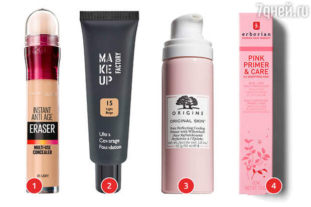 2. Ультраплотный тональный крем ULTRA COVERAGE Make Up Factory. 3. Праймер Origins. 4. PP праймер для лица Erborian.Поэтому тональный крем или, ладно, крем-пудра, подойдут. Желательно, чтобы в составе средства были увлажняющие компоненты, они хорошо разглаживают кожу, а еще светоотражающие частички. Словно фотошоп, они рассеивают свет и маскируют морщины.