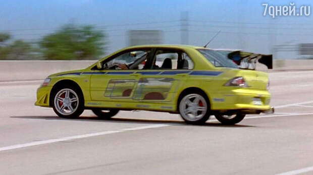 Едем далее. Следующим авто Брайана после появления в фильме его старого друга Романа Пирса стала салатово-желтая Mitsubishi Lancer Evolution VII. На протяжении всей своей автоистории, «эвики» постоянно соперничали с Subaru Impreza WRX STI. Но в «Двойном форсаже» ей пришлось попробовать другого соперника. На данный момент семейство «лансеров» насчитывает уже целых 11 поколений. Шестое, которое снималось в фильме, производилось с 2001 по 2003 годы и обладало мощностью 276 лошадиных сил. Примечательно, что, в отличие от других участников нашего списка, в случае с Mitsubishi все пошло по иному пути: производитель выступил партнером фильма, поэтому участие его автомобиля стало обычным PR-ходом. Японцы в то время собирались выходить на американский рынок с восьмым поколением «эволюшена», поэтому им необходима была хорошая реклама. За ралли, в которых они участвовали из покон веков, американская публика особенно не следила, поэтому удивлять ее было решено через фильм о гонках. Но возникла проблема: восьмая модель еще не была готова к началу съемочного процесса, поэтому пришлось экстренно «гримировать» седьмую, которая в Штатах никогда официально не продавалась, как и Skyline. Всего использовалась 4 экземпляра, которые после съемок должны были вернуться на родину, чтобы закончить там свой путь самурая, но создатели картины решили использовать их в продвижении и промоакциях, а затем продали в частные коллекции. Три к настоящему моменту находятся в США, и одна – в Европе.
