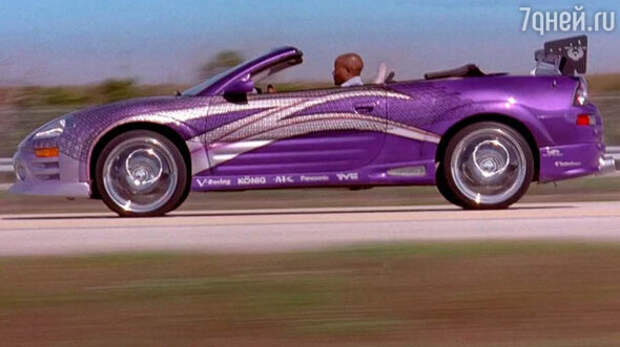К слову, о Романе. Сам темнокожий приятель Брайана также присел за руль Mitsubishi, однако фиолетового кабриолета Eclipse Spyder. Выходя с завода на протяжении двух лет с 2004 по 2006 годы с двигателем не очень большой мощностью 196 лошадей, «спайдер» стал вторым шагом рекламной компании Mitsubishi. Как и в случае с «эво», для съемок японцы предоставили 4 кабриолета. Только без проблем с ввозом – данная модель изначально создавалась с прицелом именно на американский рынок. Все четыре машины получили обвесы Shine Street и 20-дюймовые диски Lowenheart. Технически они отличались от заводских собратьев только 3-литровым двигателем V6 и мощностью в 210 лошадей.