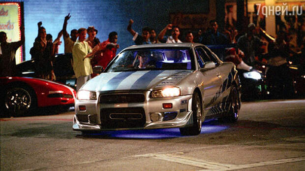 Одна из первых машин, которую в «Двойном форсаже» видят зрители – это Nissan Skyline GT-R (34). Модель в 34-м кузове производилась с 1999 по 2003 годы и обладала 2,6-литровым двигателем мощностью 281 лошадиная сила. Легенда японского автопрома никогда официально не поставлялась в Соединенные штаты, но энтузиасты находили обходные пути, чтобы добыть ее. Таким образом, к началу съемок второго «Форсажа» в США было только 11 официально зарегистрированных моделей 34-го «скайлайна». Тот, что в итоге стал первым «главным героем», был лично куплен консультантом картины Крейгом Либерманом. «Скаю» нанесли серебристый «грим», сменив его заводскую синюю окраску, а вот внутренности авто менять особенно не пришлось: уже имеющиеся нагромаждение баллонов с азотом и тюнинг двигателя и салона как нельзя лучше отвечали требованиям продюсеров. Для общих планов и каскадерских трюков, команда «Двойного форсажа» ввезла в Америку еще несколько «гетеров» по временным документам. После окончания съемок они вернулись обратно в Японию, а Либерман перекрасил свой экземпляр обратно в синий цвет.