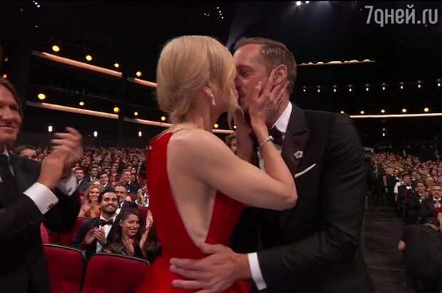 Николь Кидман вновь потрясла всех своим непосредственным поведением. Многие в ужасе замерли, когда победительница премии «Эмми» в номинации «Главная роль в минисериале» выскочила на сцену и буквально бросилась в объятия актеру Александру Скарсгарду, страстно впившись ему в губы.