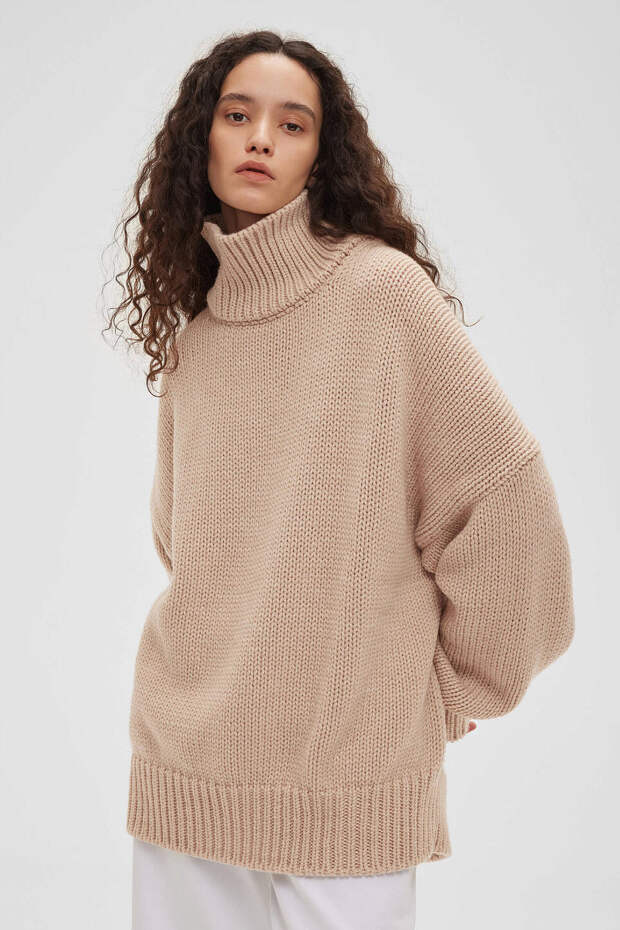 Объемные шерстяные свитера крупной вязки – это воплощение уюта и практичности. В тренде натуральные оттенки и простые формы.