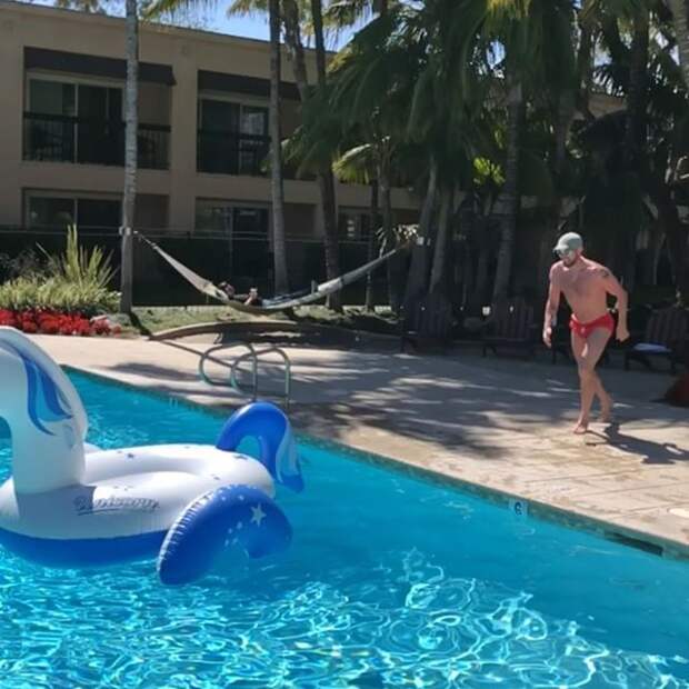 На фото: Вот и Погода пришла!!!✌️ Развлекаюсь как могу!!! Чего бы ещё придумать....? Надо на океан ехать в холодную воду!!! ✌️ #romankostomarovkrs #отдых #losangeles#кайф#peace