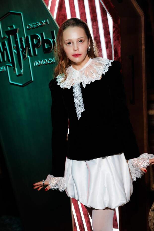 А вот Ольга Медынич была в образе вампира с черными линзами. Актриса приехала со своим мужем Джемалом Тетруашвили. Во время премьеры Ольга объявила о прибавлении — в новом сезоне она сыграла мать ребенка, родившегося в особенной семье. В реальной жизни Медынич тоже является мамой — воспитывает 12-летнего сына Диму. Материнство сильно изменило актрису: она отказалась от любых экстремальных развлечений и очень бережет себя.