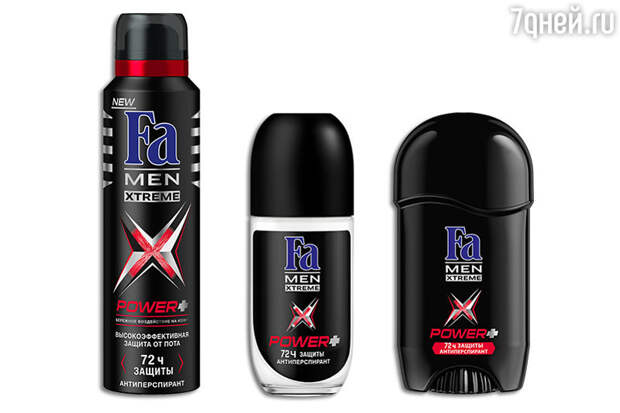 Спустя всего 5 дней использования этих антиперспирантовпроцесс потоотделения становится заметно менее интенсивным.В серию Fa MEN Xtreme Power+входят три средства: