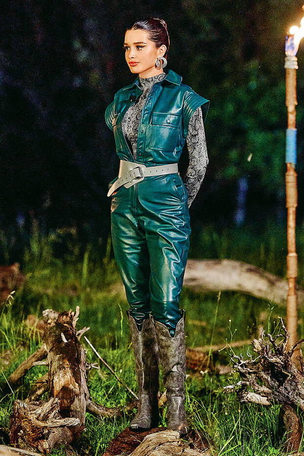 Широкий пояс или ремень корсетного типа — очень актуальный в этом году аксессуар, который надо носить не на талии, а ниже — на бедрах, как это делают модель на показе и Ксения Бородина. В 80-е низко посаженный ремень (hip belt) надевали поверх платьев, блузок и свитеров. Он имел диагональную форму. Нередко его снабжали декоративными элементами в виде цепей, металлических вставок, крупной пряжки, смещенными от центра застежками. С таким аксессуаром на сцене появлялась не раз и певица Мадонна.