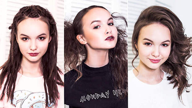 Арина Данилова в съемке для «7Дней.ру» примерила три варианта крутых, но простых в исполнении укладок.