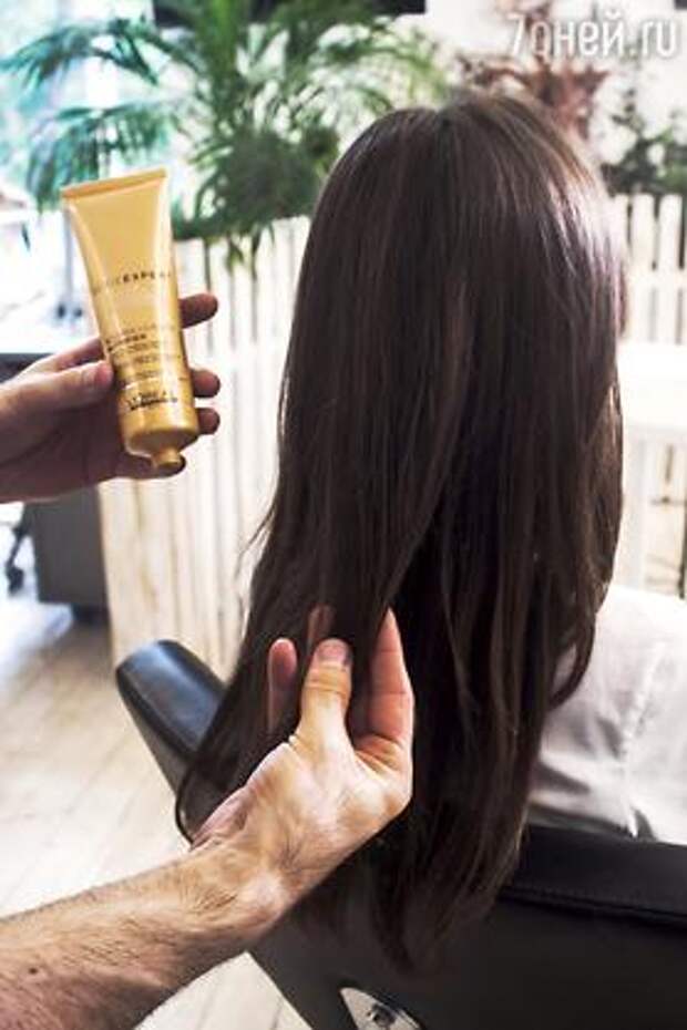 Шаг 1Нанести на массу волос крем для брашинга с термозащитой Nutrifier (здесь и далее все средства для укладки – L’Oreal Professionnel).