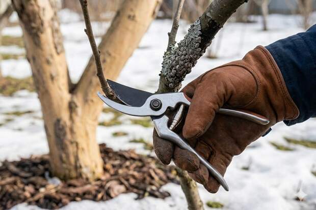 Март — подходящее время для обрезки. Удаляют все мертвые или больные ветки, чтобы способствовать здоровому росту. Обрезку важно проводить чистым садовым инструментом, вымытым и вытертым насухо. Делайте ее аккуратно, стараясь не захватывать слишком много здоровой части ствола или веток. После обрезки все крупные срезы желательно обработать садовым варом.