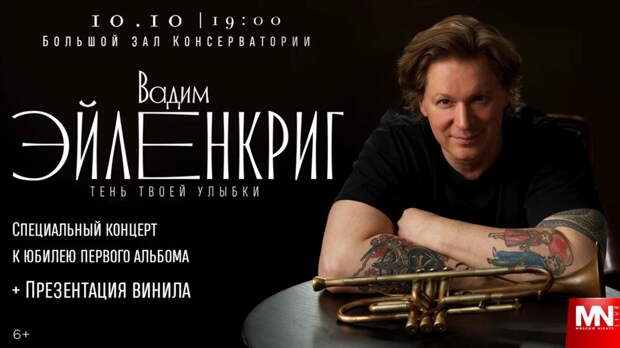 Известный трубач и телеведущий, заслуженный артист Республики Татарстан Вадим Эйленкриг и артисты его творческого объединения Eilenkrig Crew представят программу «Тень твоей улыбки», посвященную юбилею дебютного альбома музыканта The Shadow of Your Smile.Ставшая знаменитой пластинка вышла в середине 2009 года в рамках запуска лейбла Butman Music, и вот спустя 15 лет Вадим Эйленкриг — уже в статусе хэдлайнера российского джаза — презентует необычную программу, посвященную своему первому релизу. На легендарной сцене Московской консерватории прозвучат произведения из альбома в актуальном звучании коллектива, а также новые пьесы, которые музыканты готовят к выпуску в следующем году. Также на концерте будет представлен лимитированный винил, сборник лучших композиций за всю историю группы.