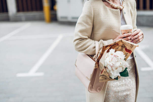 Если вы не любите перегружать себя аксессуарами, украсьте платком сумку. Завяжите его на ручке, и образ сразу приобретет индивидуальность. Этот прием работает и с деловыми, и с повседневными образами: строгий костюм с платком на сумке смотрится мягче и дружелюбнее.