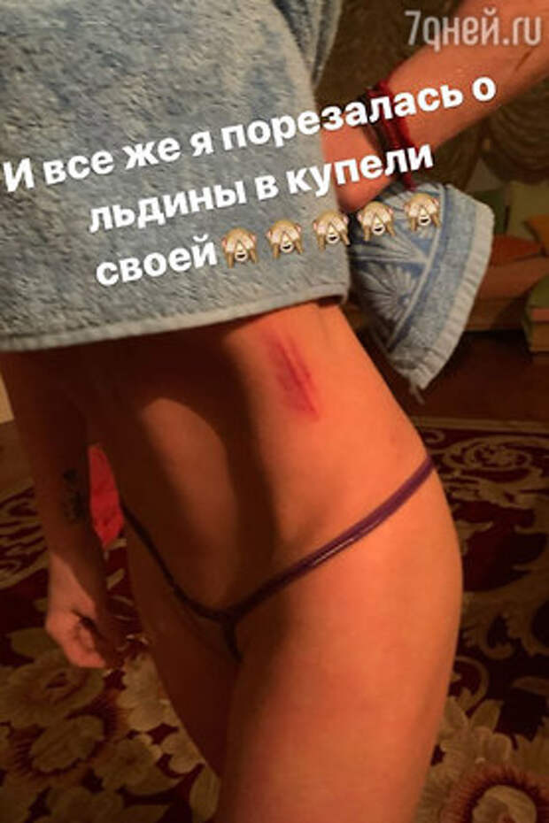 В итоге от одного из осколков у балерины осталась огромная ссадина на боку.«И все же я порезалась о льдины в своей купели», — сообщила Анастасия.