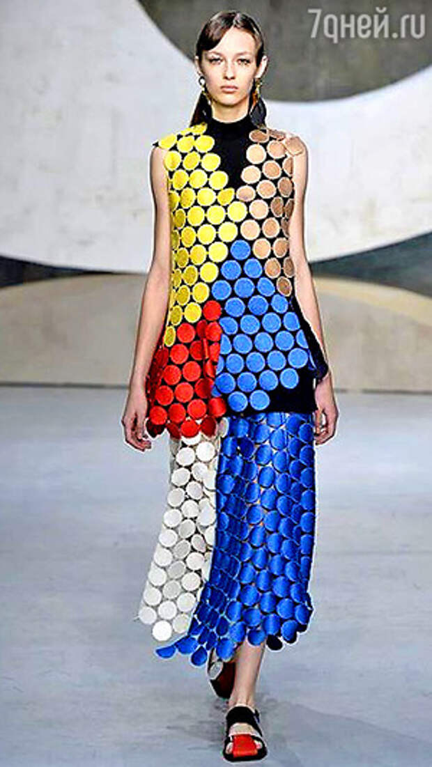 Например, черно-белый брючный костюм с ажурной накидкой.Итальянский бренд Marni уже несколько лет является настоящим флагманом мировой фэшн-индустрии. Многие модники ориентируются на его коллекции, выбирая актуальные цвета и формы. Следующей весной марка предлагает сделать упор на многослойные комплекты. Советует надевать сарафаны на водолазки без рукавов или три разно-фактурных топа одновременно.